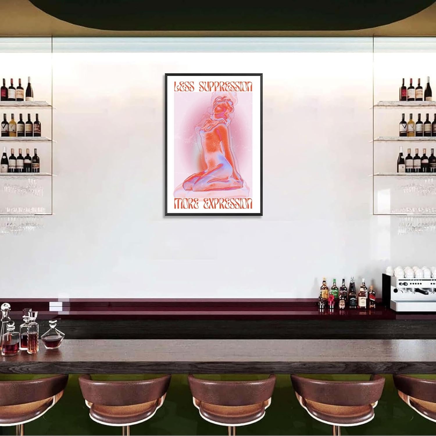 Spiritual Affirmation Art Poster Pink Woman Canvas Wall Art Aesthetic Pictures Sexy Woman Prints Painting Trendy Gradient Aesthetic Wall Decor Living Room Bedroom 24x36in Framed