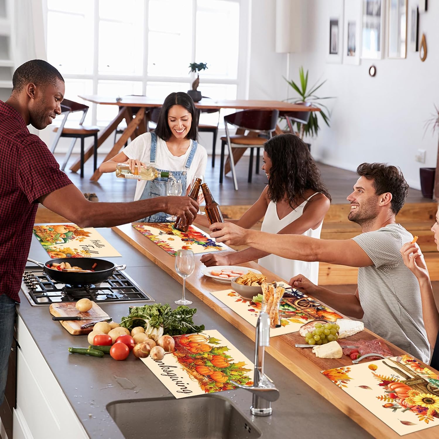 • 【Unique Design & Stylish】Elevate your fall dining experience with our Thanksgiving placemats! The design of the Thanksgiving theme placemat incorporates classic elements of the turkey, maple leaf, pumpkin and harvest. Fall harvest placemats add a touch of brilliance to your table setting. Impress your guests and create an unforgettable cheerful atmosphere for your party.