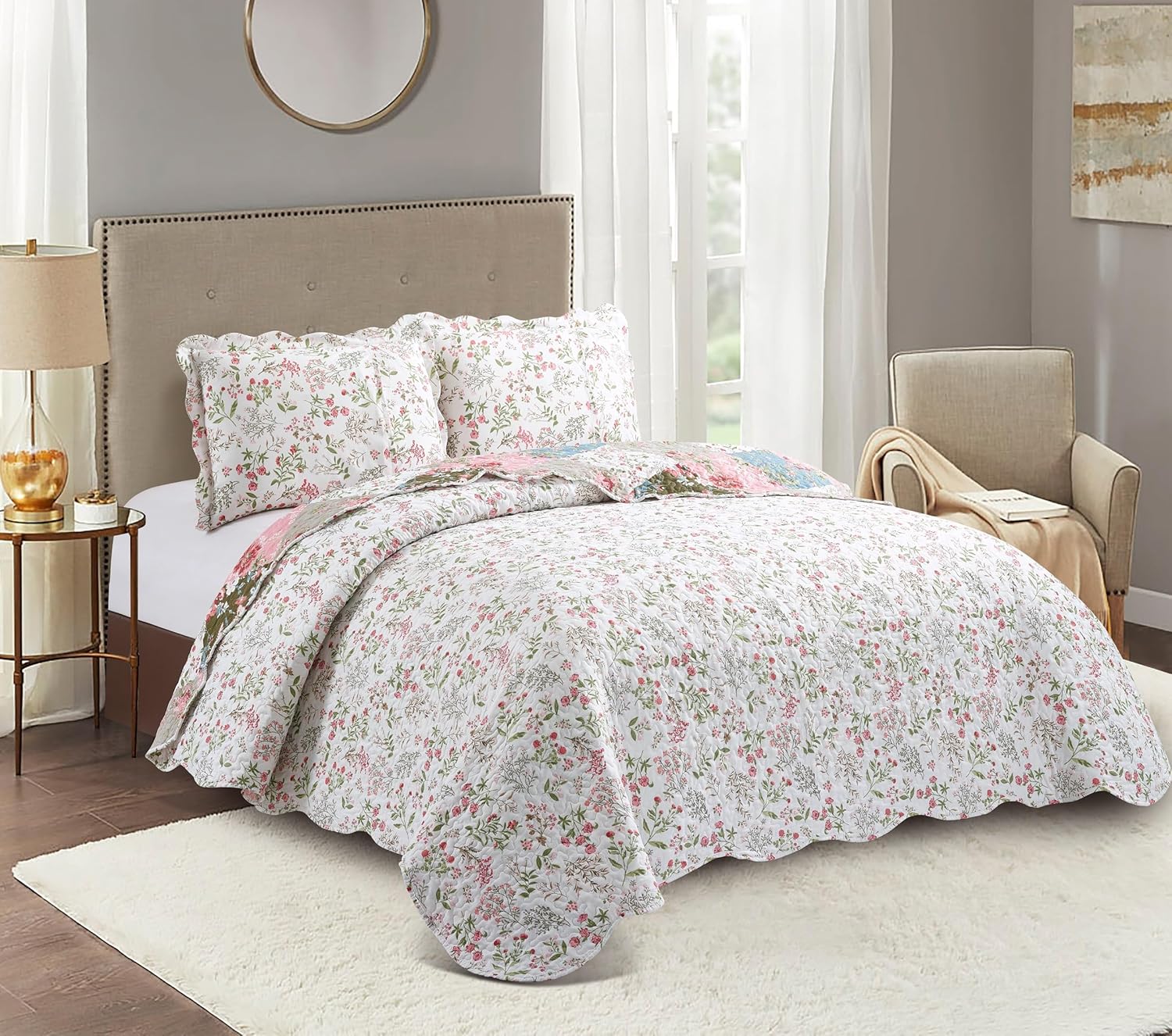• Multiple options are available: quilt set Twin, quilt set Full/Queen, quilt set King. Matching decorative ruffle pillow shams, couch covers and couch armrest organizer are available for additional purchase.
