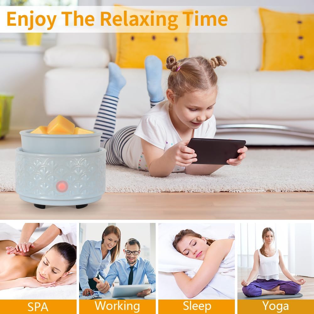 • 【Energy Saving& Safe】 Experience a safer and cleaner alternative to traditional candles. This ceramic wax melt warmer offers a flameless, soot-free, and pollutant-free way to enjoy your favorite scents.