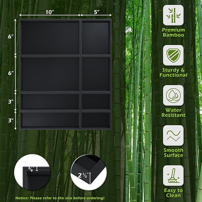 • Elegant 8 PCS Black Drawer Organizer - Greatseas black silverware organizer set is made of bamboo, and the bottom is made from engineered wood board, which is more stable, durable & food-safe than plastic material. These bamboo drawer organizers with delicate workmanship, makes excellent details and ultra-smooth hands feel without worrying about pricking your hands