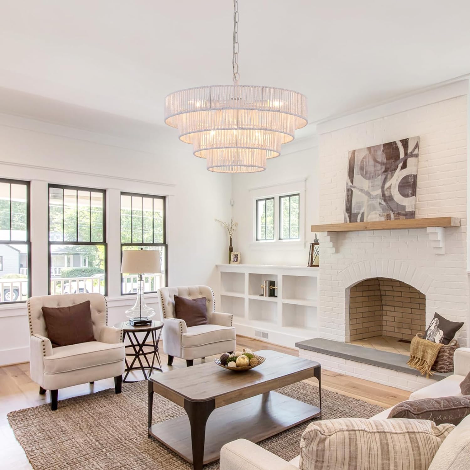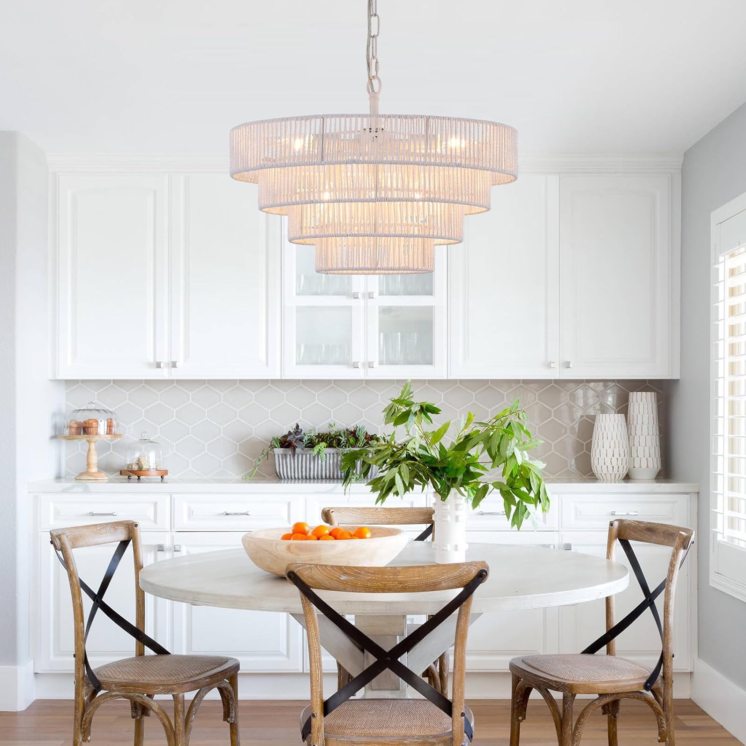 • Eye-Catching Design: This woven rattan chandelier is made of wicker woven with high-quality 4 round metal frames finished by white, forming a semicircular hollow cage, combining boho, modern, and elegant feelings to your home.