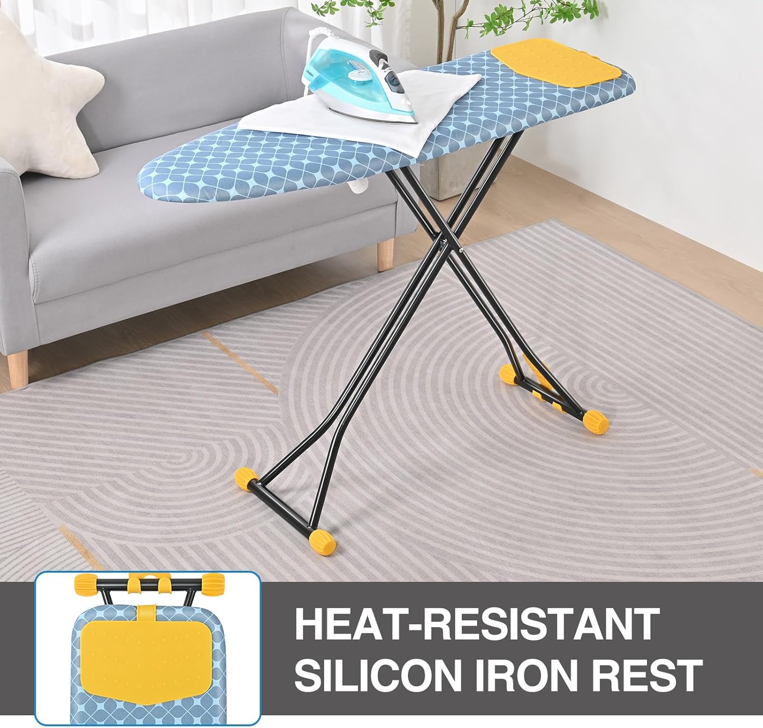 APEXCHASER Ironing Board with Iron Rest, Compact and Space Saver Iron Board, Extra Thick Cover, Height Adjustable, Wall Mount & Closet Hanger 13x43 Yellow
