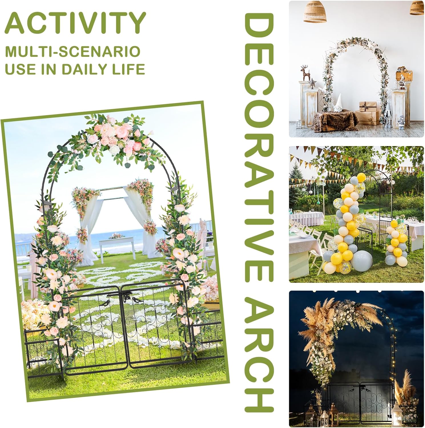 • 【GREAT FOR EVENTS】This walkway trellis is also great for weddings, anniversaries, birthday party, Christmas or other important occasions decoration. Decorate it with balloons, leaves, party banners, tulle, LED fairy lights or anything else you want, makes your events classic and fabulous