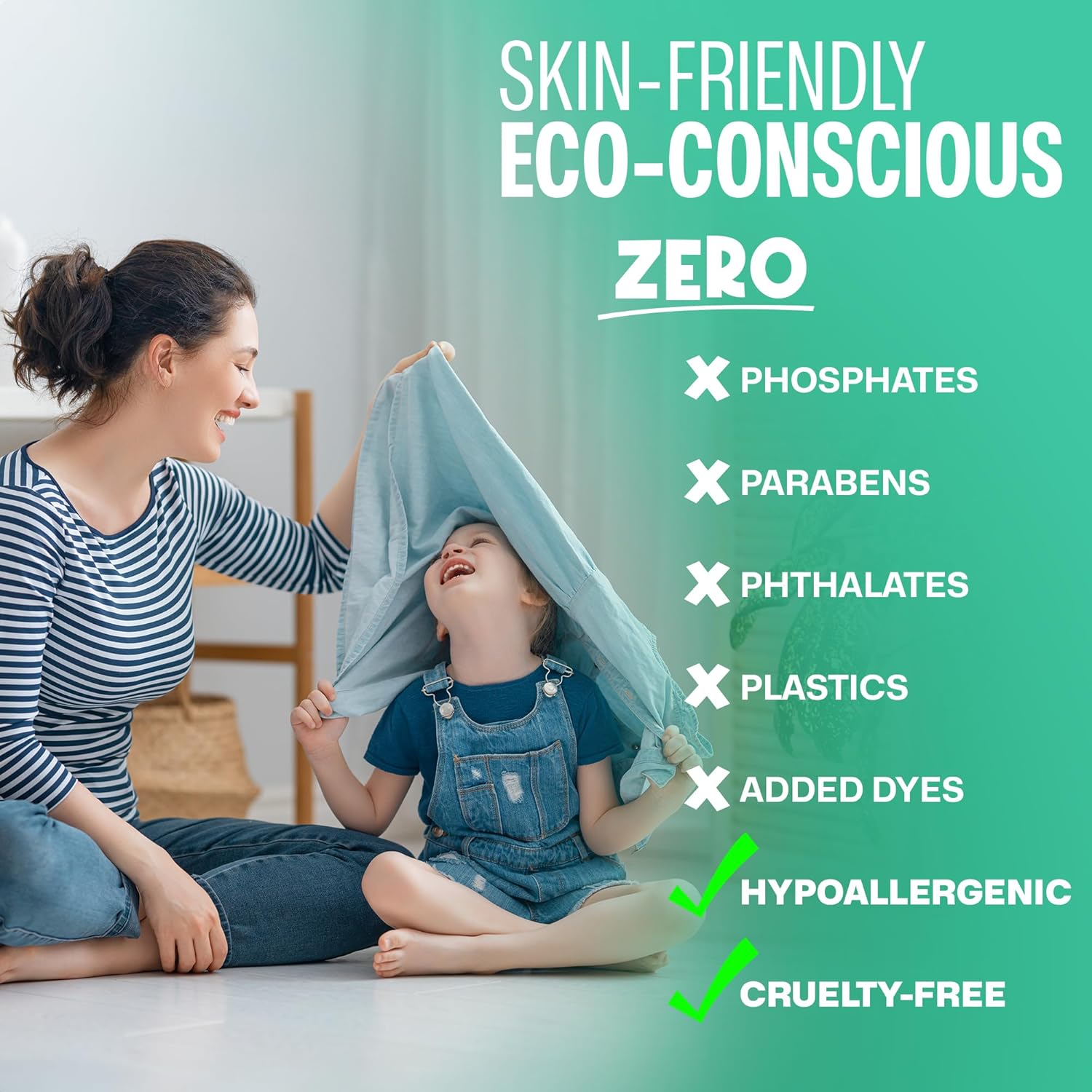 • SENSITIVE SKIN SAFE - Paraben-free, phosphate free, bleach free, dye-free. Kid Friendly. Mom Approved!