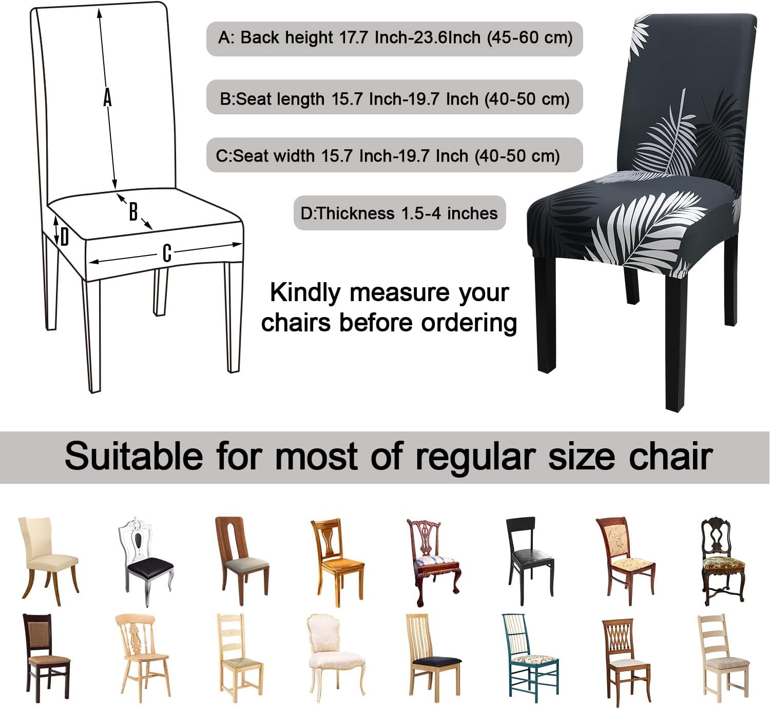 • 【High Quality of Chair Cover】- JQinHome dining room chair covers are made of durable and high persistence polyester and stretchy spandex fabric, soft, comfortable and wrinkle resistant, no ironing required; Stretchable Material,stretch that recovers quickly,secure fit with sewn-in elastic hem.