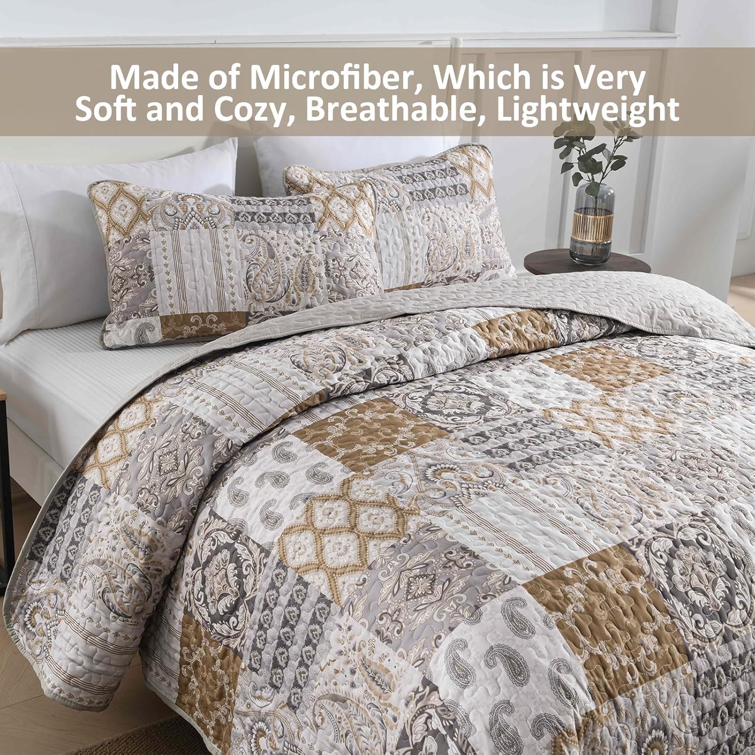 • SOFT MICROFIBER BEDDING SET: The cozy brown patchwork quilt king size bedding is made from high-quality microfiber, our quilt sets king is soft to touch, lightweight, and breathable. The firm stitch ensures long-lasting durability.