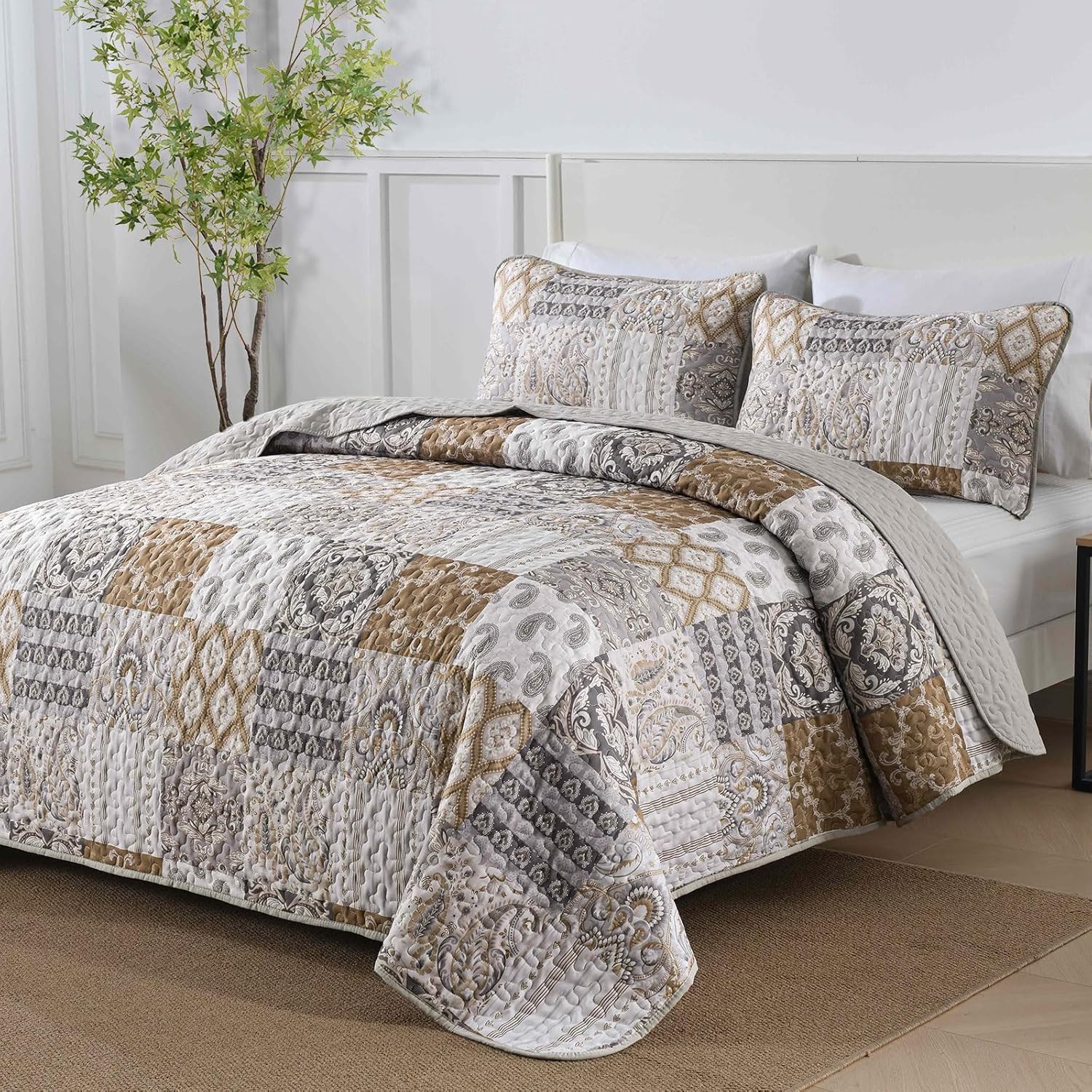 • SOFT MICROFIBER BEDDING SET: The cozy brown patchwork quilt queen size bedding is made from high-quality microfiber, our quilt sets queen is soft to touch, lightweight, and breathable. The firm stitch ensures long-lasting durability.