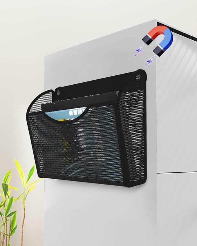 • MULTIPLE USES - You can put the magnetic file holder on the side of your filing cabinet, or on your refrigerator, whiteboard, etc. to reduce clutter on your desk and keep it tidy. It can also act as your magnetic mail holder,magnetic bill organizer, no more lost bills or mail
