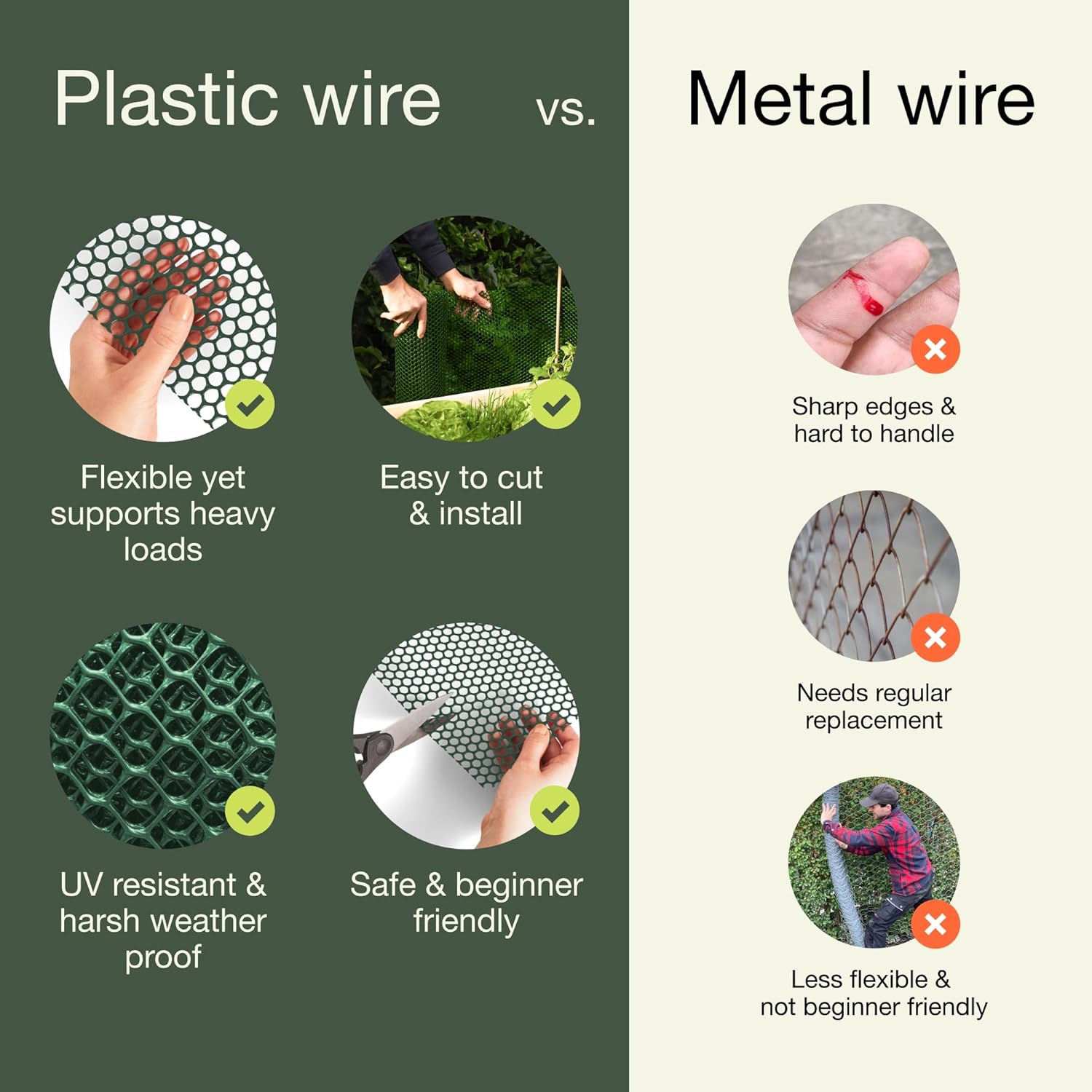• Functional And Stylish: The sleek design of this plastic mesh blends seamlessly into any outdoor setting while meeting all your garden fence animal barrier needs. Whether you need a dog fence barrier or poultry netting, this mesh handles it all with style