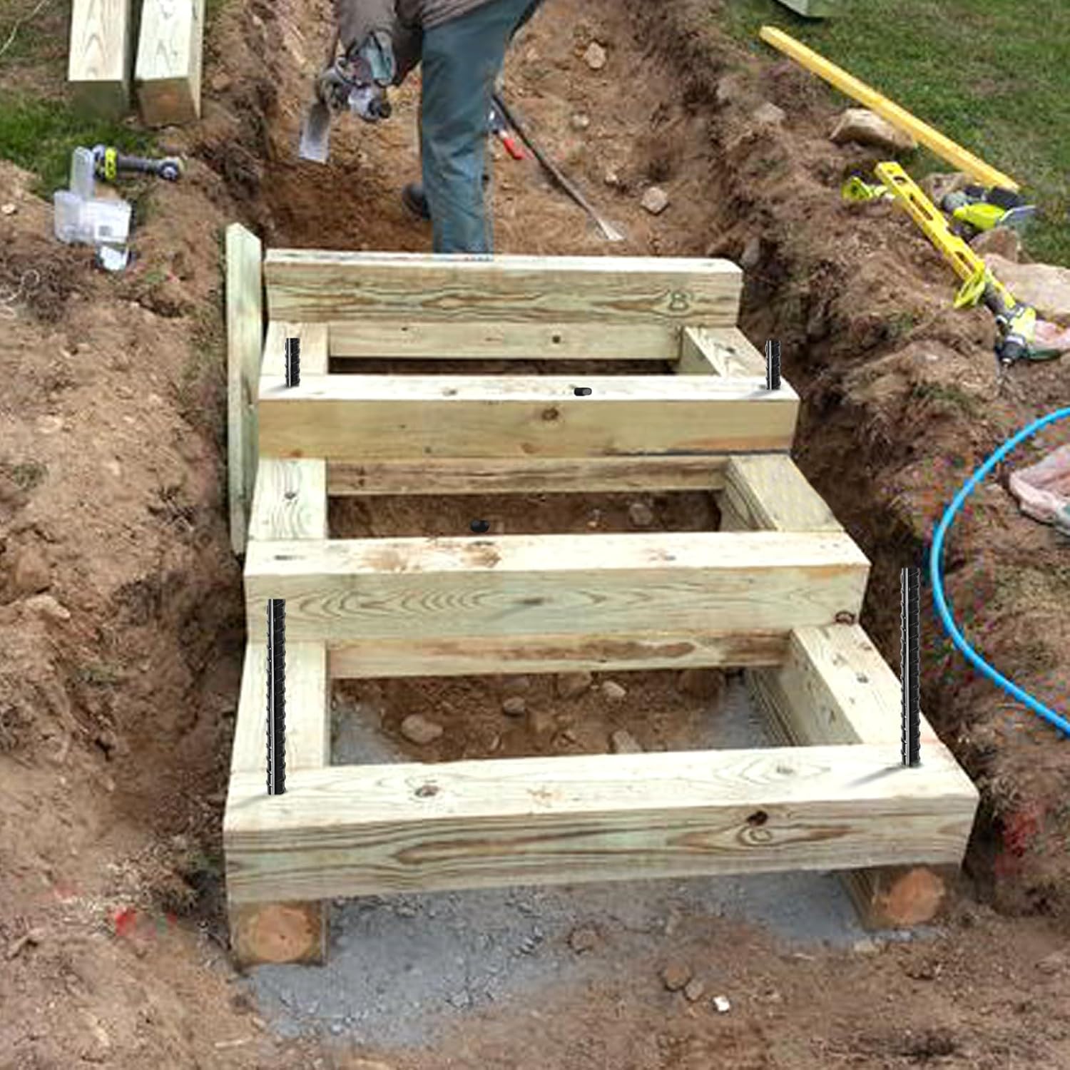 • 【24" STRAIGHT REBAR STAKES】Sold in bundles of 20 ea. 2 feet long and 1/2 inch diameter steel rebar, widely used in camper, arbor, landscape timber, garden bed, carport, swing set, playground equipment etc.