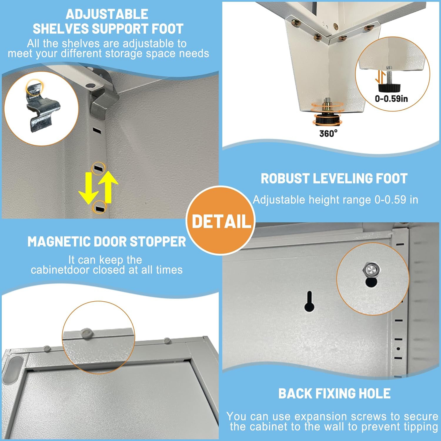 • SECURITY PRACTICAL DESIGN: Storage cabinet with doors is equipped with 3 adjustable shelves to meet your different needs. 2 pre-holes on the back of food pantry cabinet, help cabinets be mounted to the wall, prevent tipping.