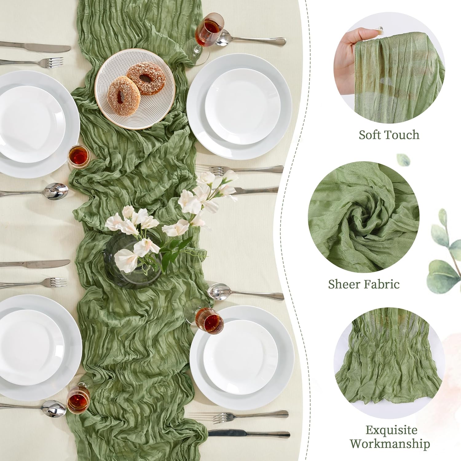 6 Pack Sage Green Cheesecloth Table Runner 10FT Long Boho Gauze Table Runner Rustic Sheer Runner for Wedding Bridal Baby Shower Birthday Party Table Decor Thanksgiving Christmas Decorations