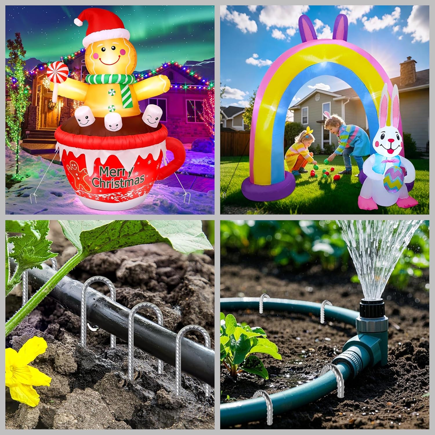 • Chisel Point End--45 degree end makes j hook stakes diving into ground quickly and easily to hold down the swing sets, bounce house, wire fence, lawn sprinkler, Christmas inflatable decorations, animals statues, birdbath