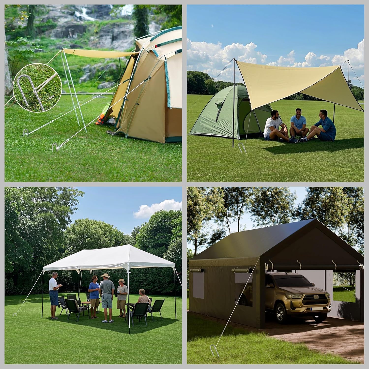 • Wide Applications--These heavy duty stakes for high wind work great for securing tents, trampolines, soccer goals, patio furniture in any weather and also perfect for pinning down weed fabric on tough soil or keeping outdoor decorations from blowing away