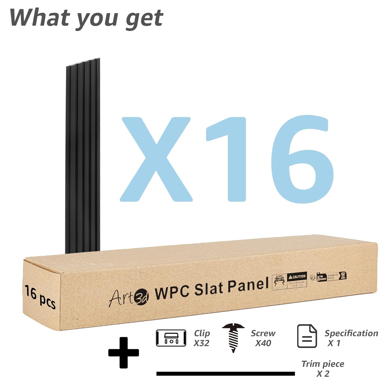 Art3d WPC Wainscoting Panels, 16-Pack 48 x 6 Inch 3D Wall Accents for Interior Wall Decor, Living Room, Bedroom, Black