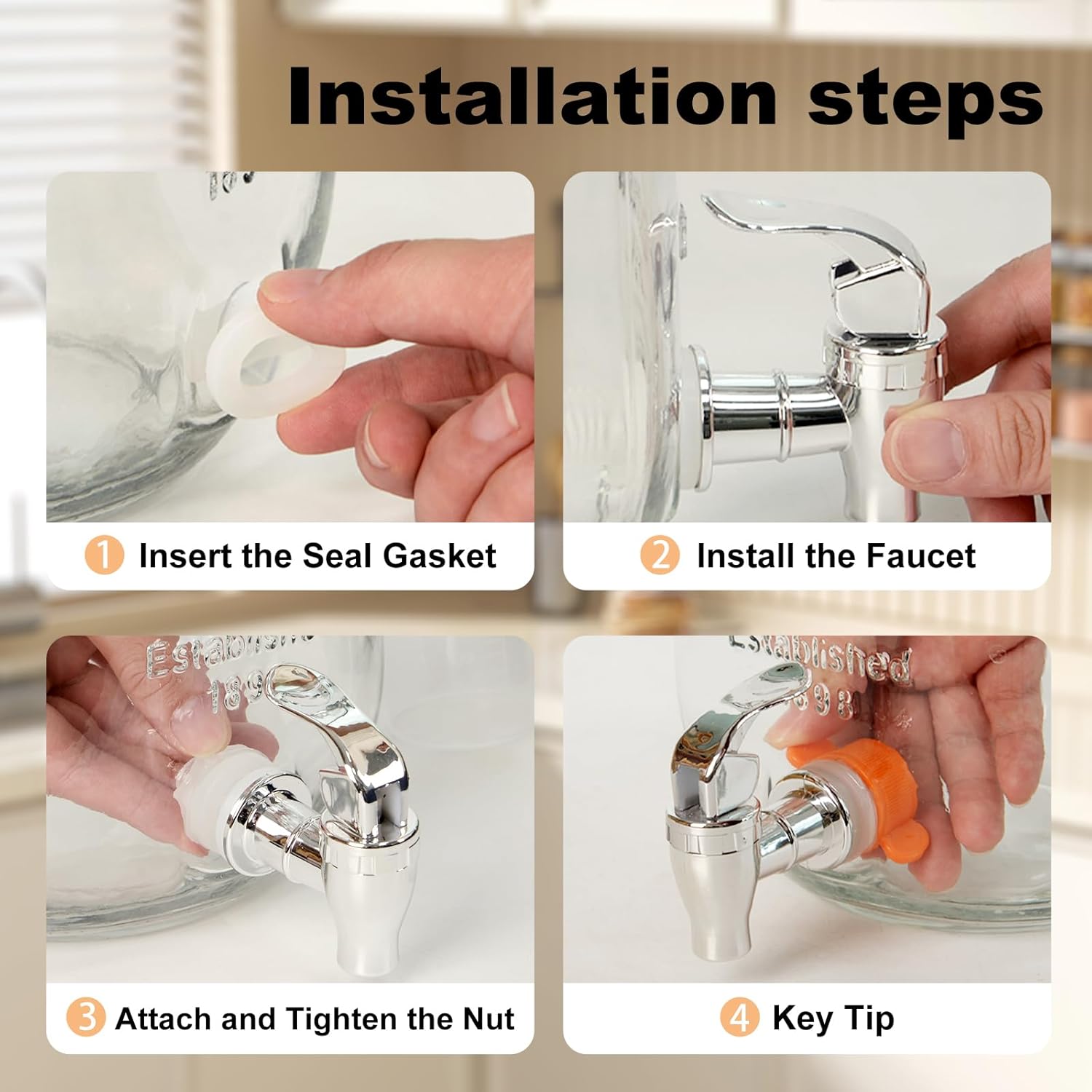 • Practicality and Safety: A leak-proof rubber ring prevents spills, while drip mats keep the area clean. The included wrench tightens spigots easily, and the instruction manual ensures hassle-free assembly, offering a user-friendly experience.