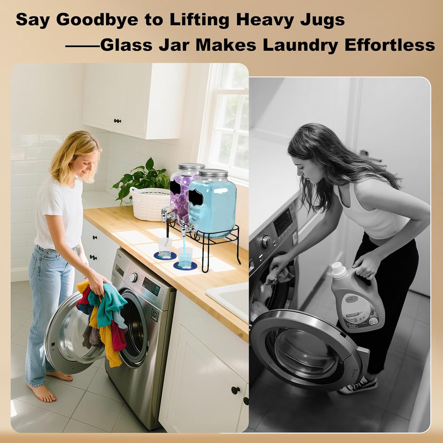 • Versatility: Ideal for laundry detergent, fabric softener, bleach, and beverages, this dispenser fits homes, hotels, and gyms. Whether as a laundry softener dispenser or liquid laundry detergent container, it meets diverse liquid storage needs.