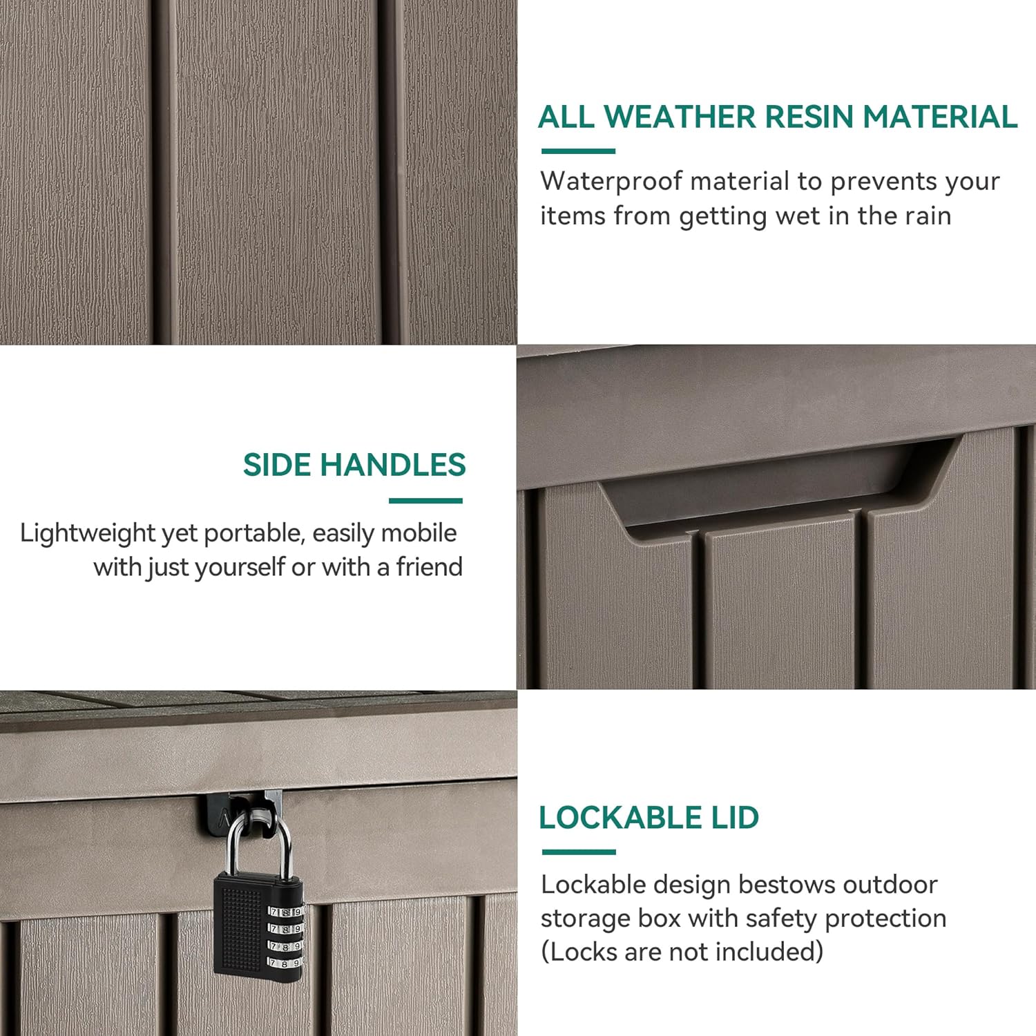 • DURABLE STRUCTURE- This outdoor storage box is made using all-weather resin featuring a lockable lid that prevents the product from rusting; Safe for people and animals and can last for years to come (locks excluded)
