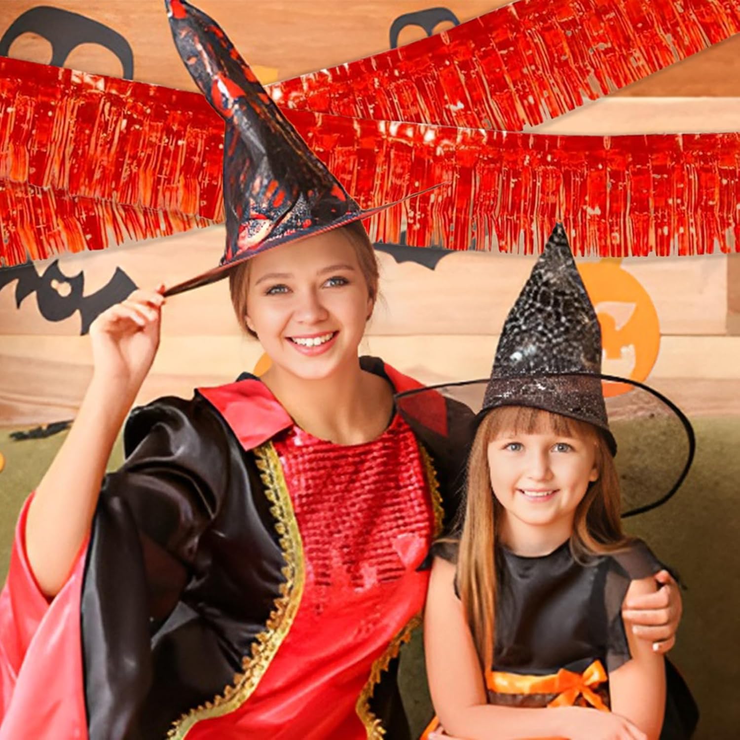 Red Foil Fringe Garland 10FT 2packs, Metallic Foil Tinsel Fringe Banners for Parade Float Decorations Wedding, Birthday Party Graduation (Two Red)
