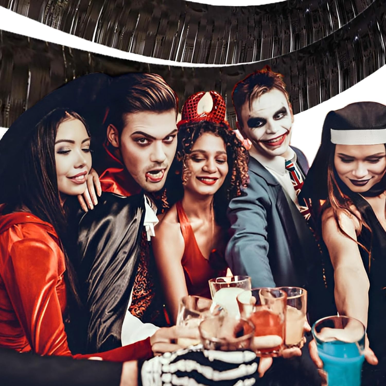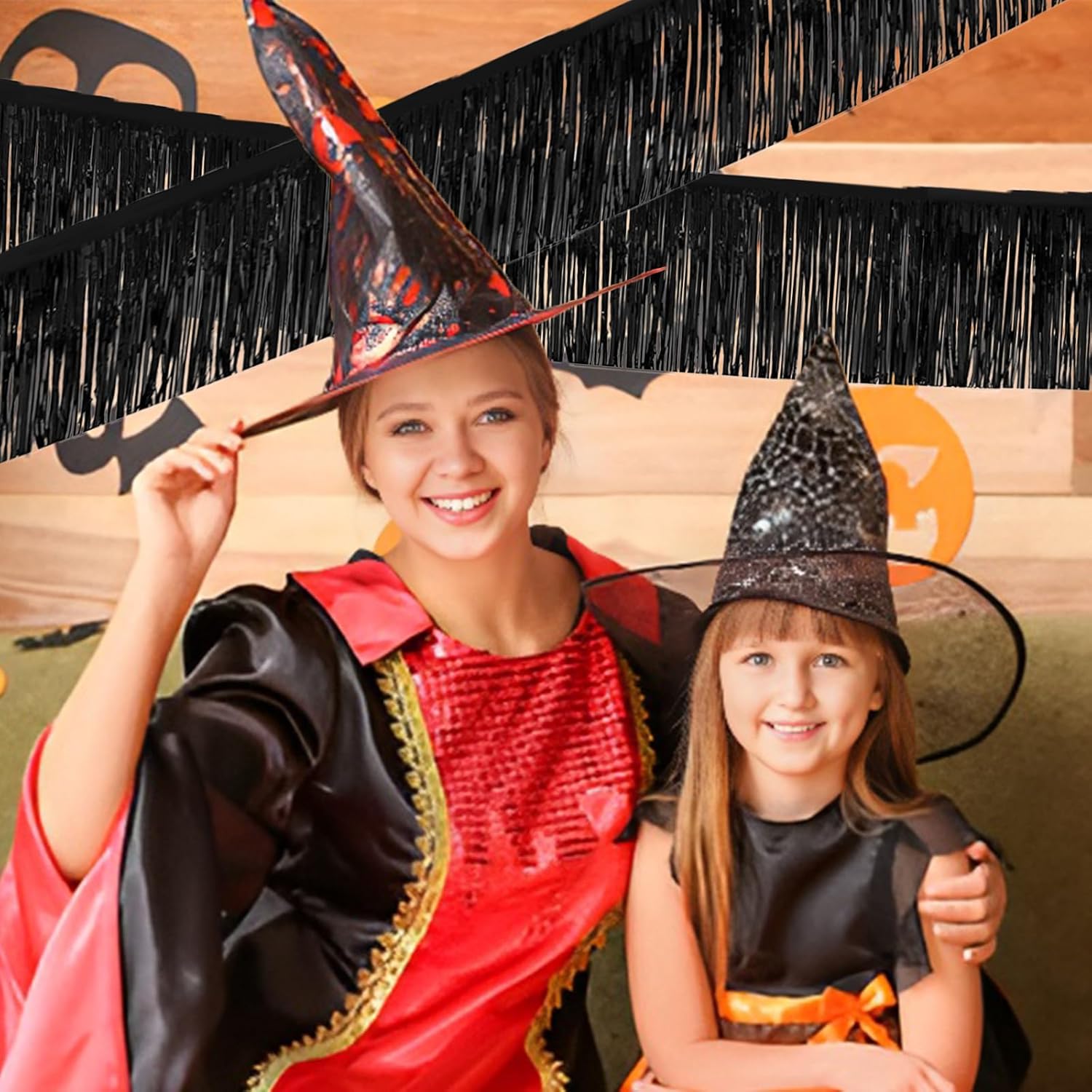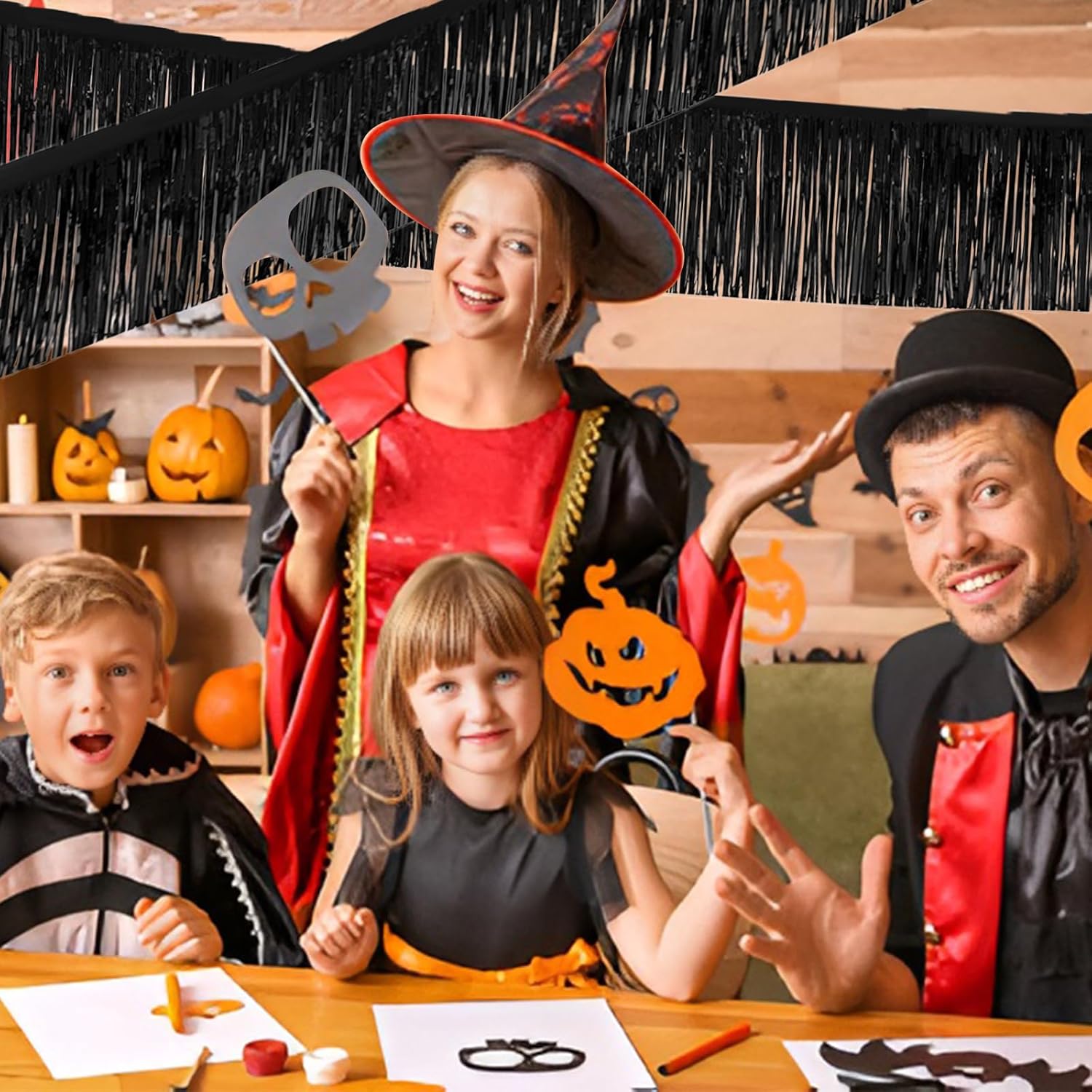 Black Foil Fringe Garland 10FT 6packs, Metallic Foil Tinsel Fringe Banners for Parade Float Decorations Wedding, Birthday Party Graduation (six Black)