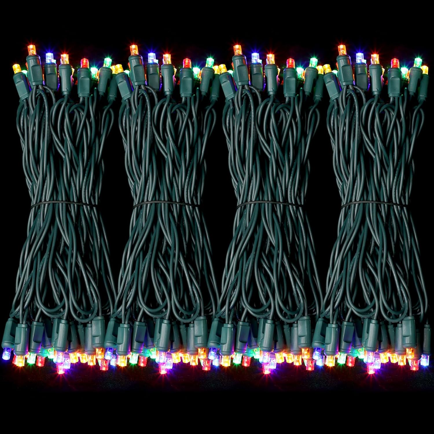• One-Piece 5MM Commercial Decoration LIGHTS : 50ft 100 LED Lights (50 Lights 25ft X2Groups), 6-inch spacing. Green wires have a wide range of uses and are perfectly integrated with green plants or shrubs.no extra adapter is needed,bulbs are cool to touch,with the rectifier,keep the light steady (not twinkle).