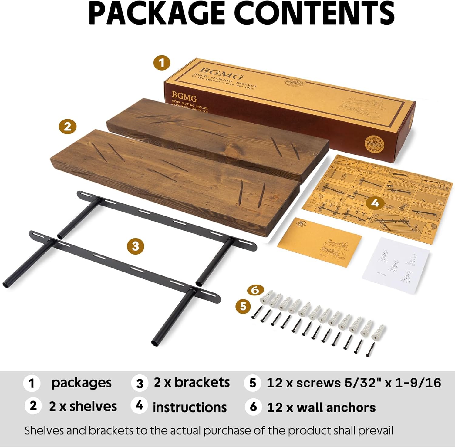 • NO SAGGING! MORE PERFECT FOR AMERICAN WALLS : BGMG premium wood shelves are built to last and hold up to 50 pounds using our smart brackets designed specifically for American wall studs, which are typically 16 inches apart! The brackets warp slightly upward to prevent the shelves from sagging and falling off!