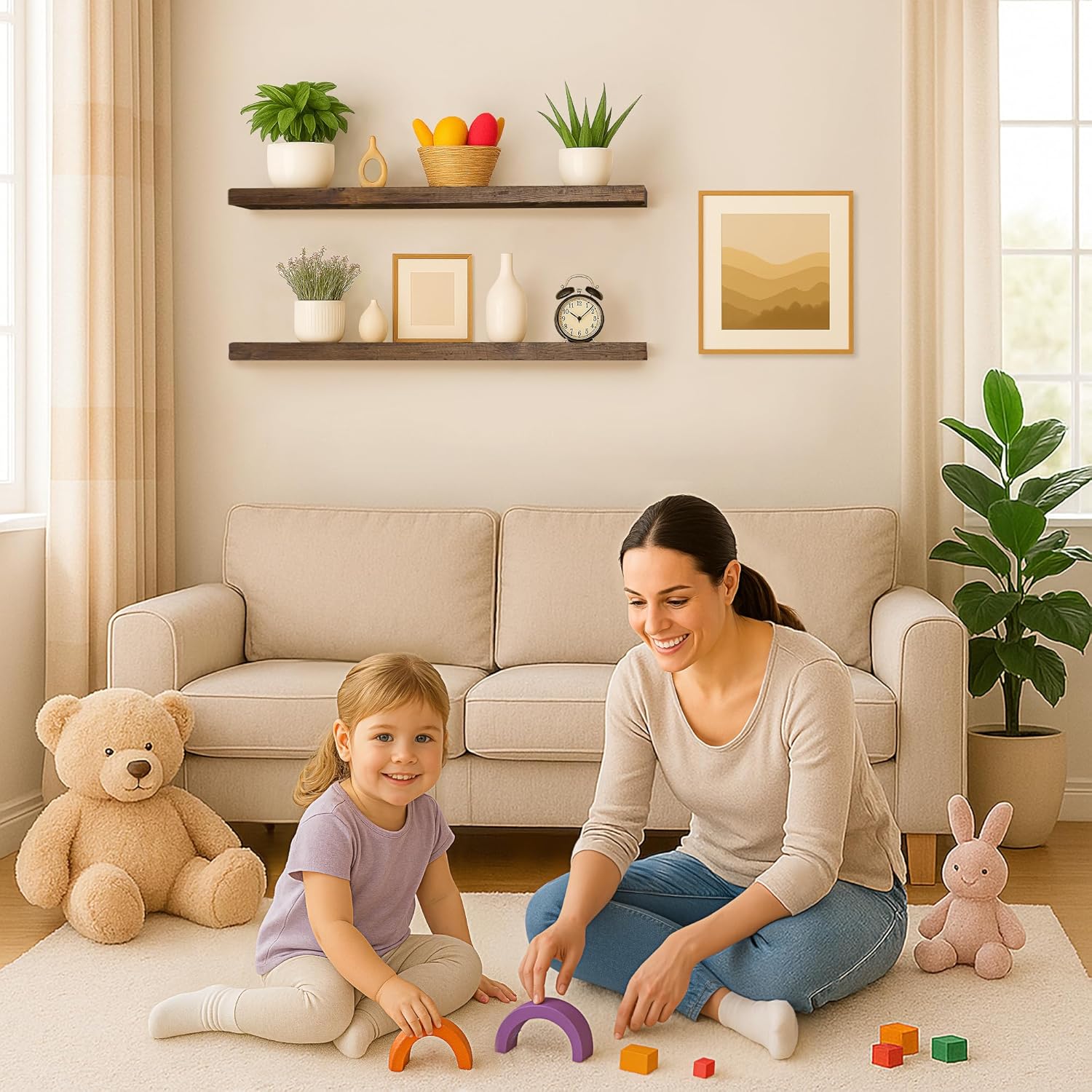 • MODERN RUSTIC LOOK - The floating shelves are made of natural pine, and the wood has different nodes and grains, so the color of each shelf may be slightly different, but equally stunning!