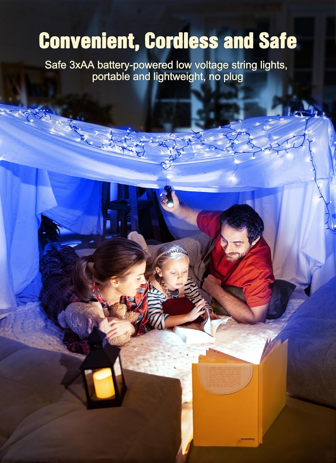 • Energy Efficient Lights : This string lights are durable, made of premium cable with energy-efficient LED bulbs, it is bendable and sturdy wire with LED lights is waterproof. Press the button on Christmas lights battery case to power on, and to activate 6 hours lighting and 18 hours off mode, no worrying about forgetting to switch off the lights