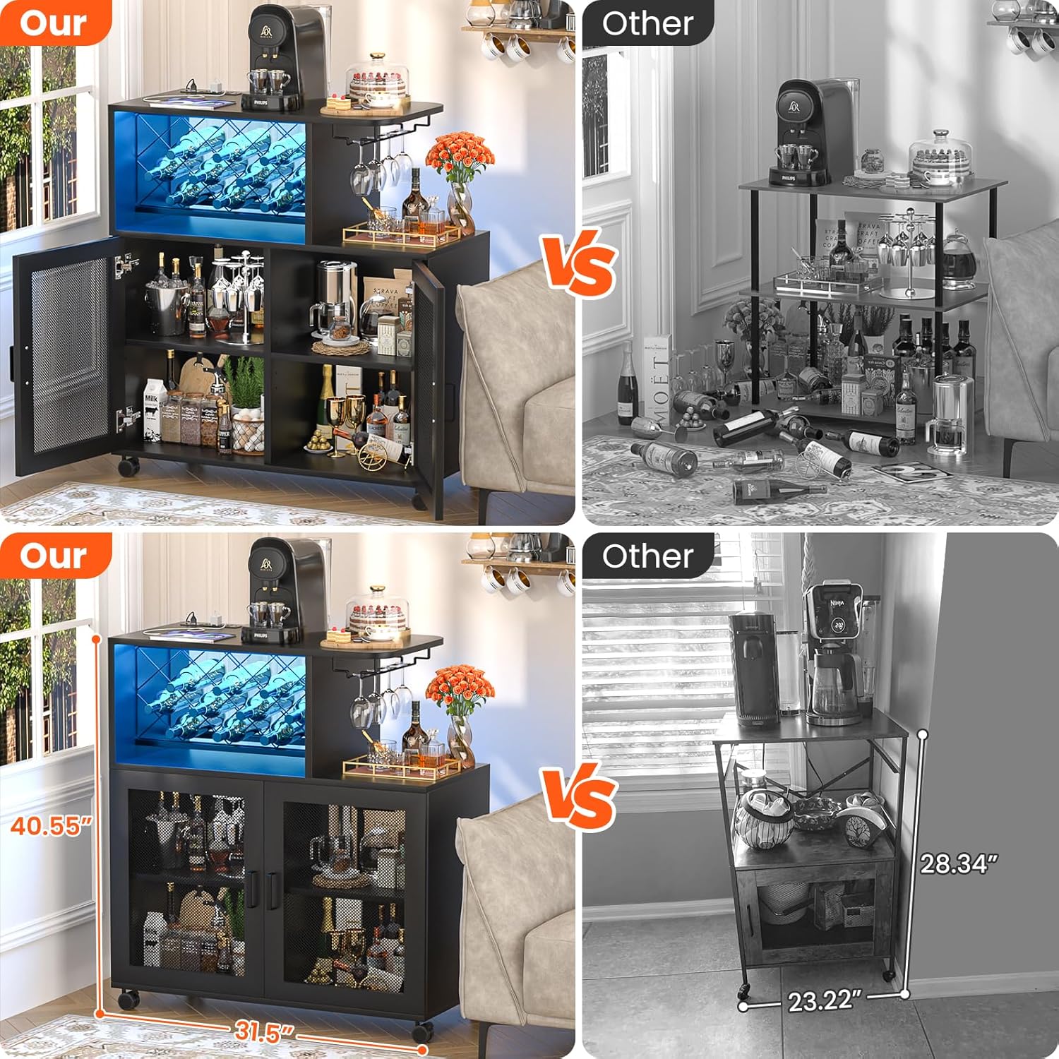 • 🍾Small Wine Bar Cabinet: Compared to other bar cabinets with a height of 28.34 ", the Girapow small bar cabinet with a height of 40.55" is ideal for placing next to the sofa as a coffee bar cabinet or as a mini home bar in the living room. There are a total of 5 wheels at the bottom, which improves stability while making it easier to move the cabinet.
