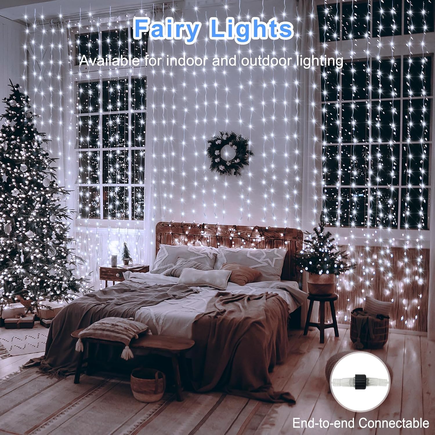 • Connectable Curtain Lights: this curtain lights allow you to connect up to 3 sets end to end, giving you the flexibility to create a larger and more impressive light display. Perfect for adding a touch of magic to your Christmas, Halloween, Thanksgiving, wedding, holiday party, or home decorations