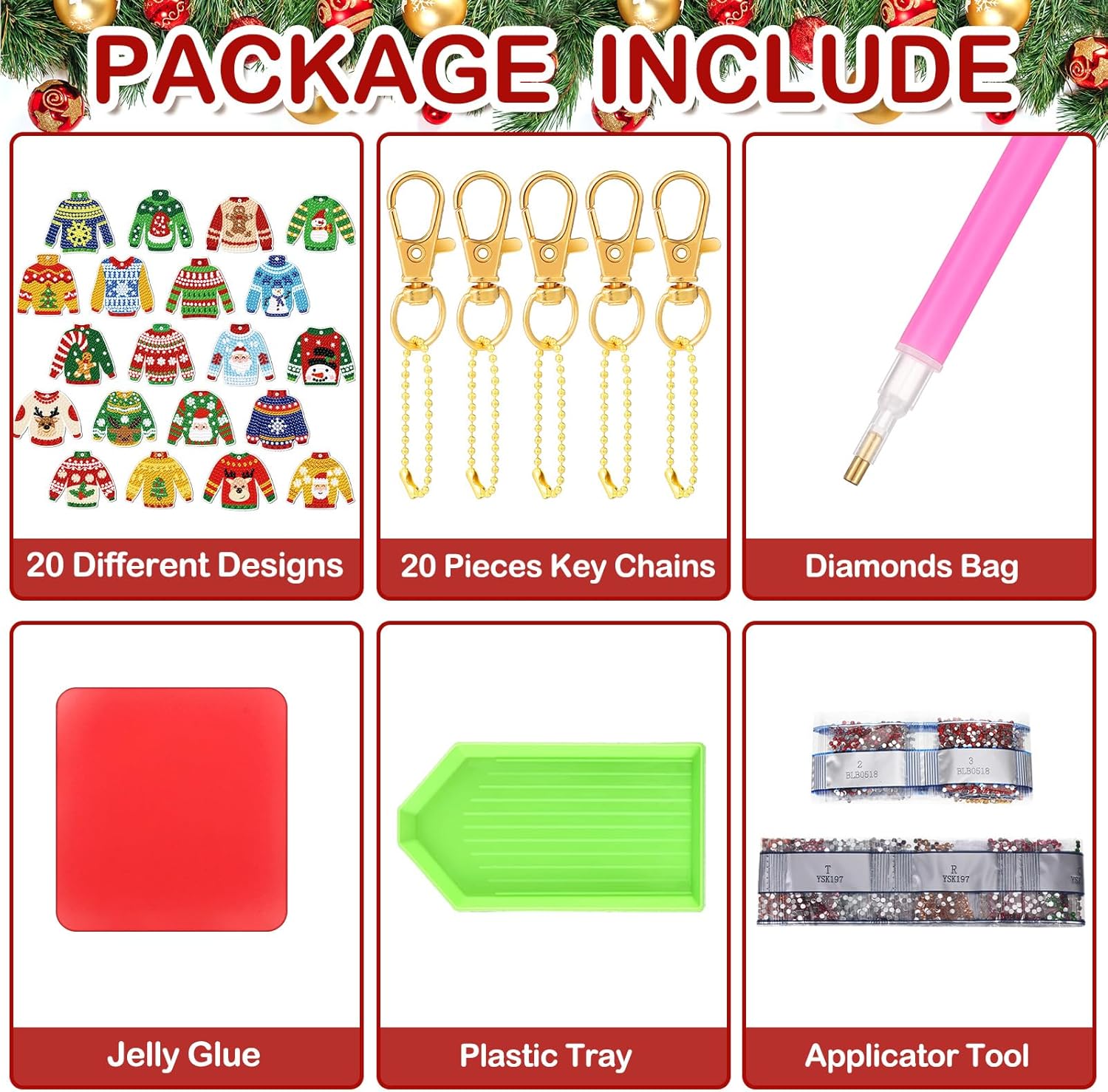 • Package Including: our package contains 20 Christmas diamond sweater painting key chains with tools, which are suitable for those who like DIY; Plenty to use for multiple projects or share with friends and family for a fun Christmas break together
