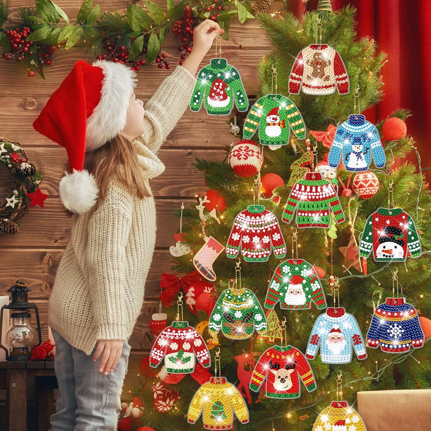 Tondiamo 20 Pcs Christmas Diamond Painting Keychain Kits 5D DIY Diamond Art Pendants Double Sided Hanging Key Chains for Christmas Party Decoration DIY(Sweater Style)
