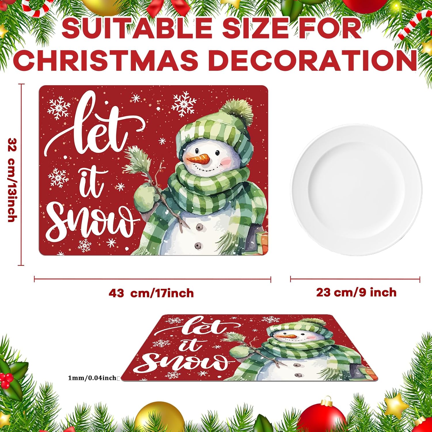 • 【Premium Material】Let It Snow dining table placemats are made of plastic material. Christmas dining table mats waterproof and heatproof, odorless and non-toxic, not easy to fade and deform, no wrinkles. Winter theme placemats can be applied many times, bringing you a pleasant dining experience.