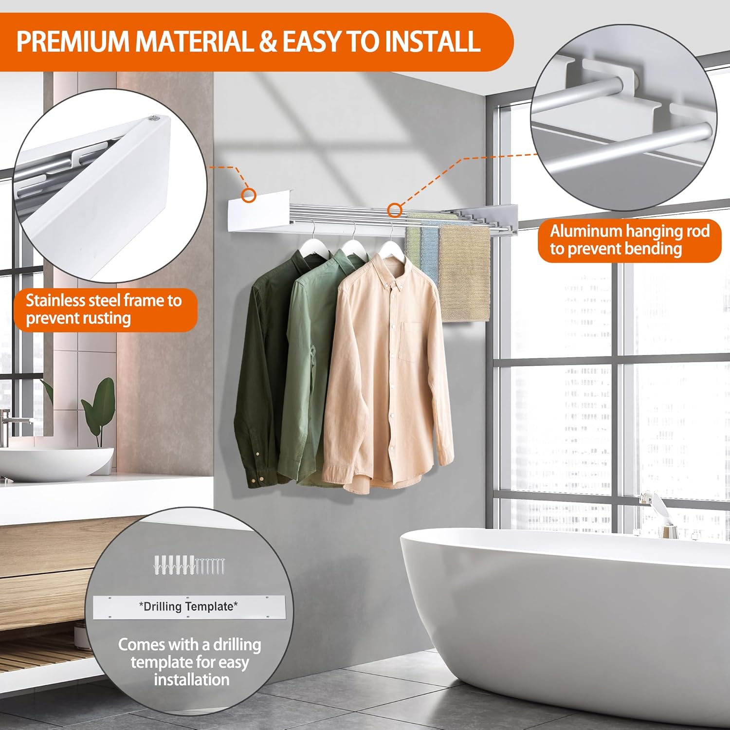 • Easy to Install - Equipped with a drilling template, it allows you to easily confirm the correct location to drill holes in the wall; At the same time, the pre-assembled design helps you simplify the installation process, allowing you to easily install it in minutes