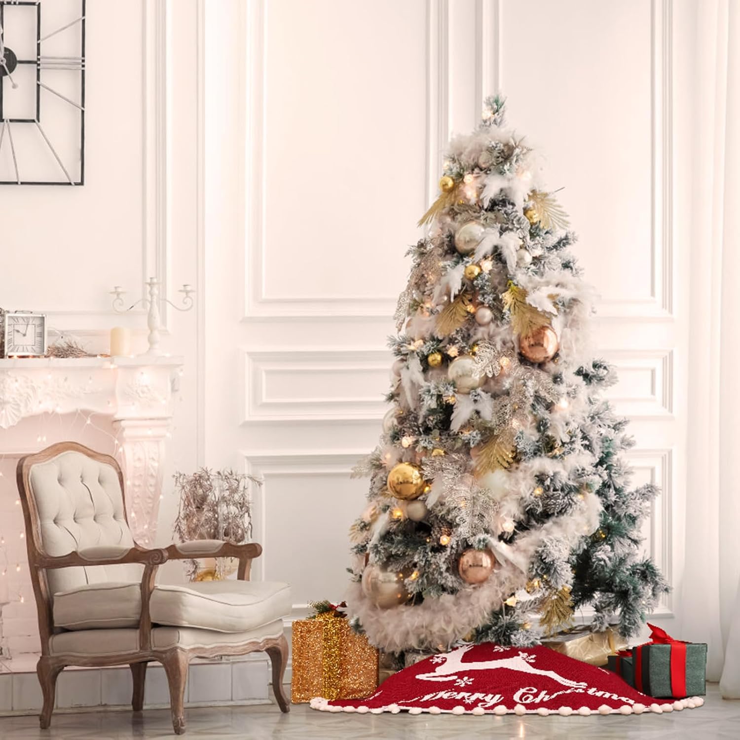 • Merry Christmas Tree Skirt:Our Christmas tree skirts is printed with elk and various sizes of snow patterns, as well as the words "Merry Christmas." The edges are adorned with small, fluffy balls, adding a festive touch to your Christmas tree. This 30-inch tree skirt is perfectly sized for most Christmas trees perfectly. Before making a purchase, please measure the diameter of your tree to ensure a perfect fit