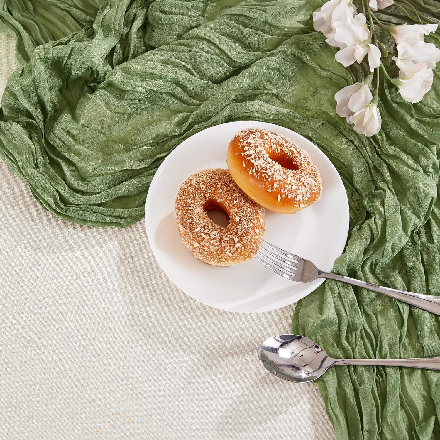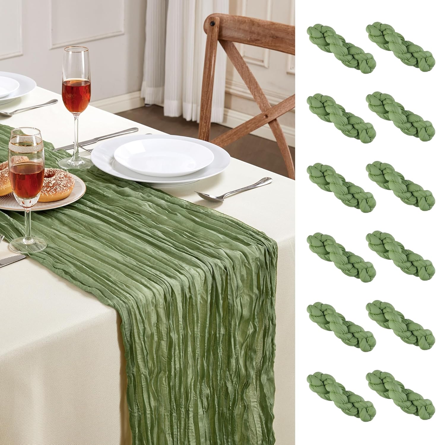12 Pack Sage Green Cheesecloth Table Runner 10FT Long Boho Gauze Table Runner Rustic Sheer Runner for Wedding Bridal Baby Shower Birthday Party Table Decor Thanksgiving Christmas Decorations