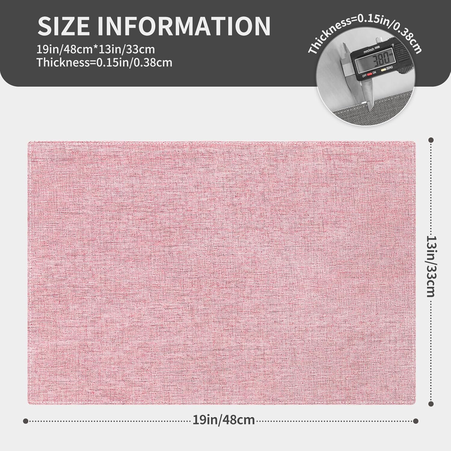 • DURABLE & THICK: Each placemat has double layers and both sides are usable. It's thick enough to protect the table form hot plates, stain, scratches and some water droplets spilled from tableware. NOT waterproof.