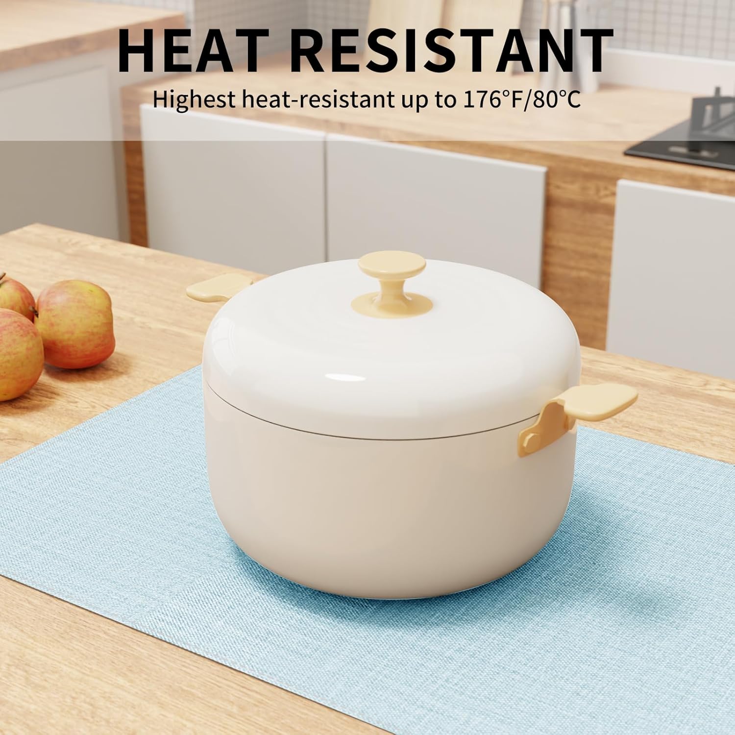 • DURABLE & THICK: Each placemat has double layers and both sides are usable. It's thick enough to protect the table form hot plates, stain, scratches and some water droplets spilled from tableware. NOT waterproof.