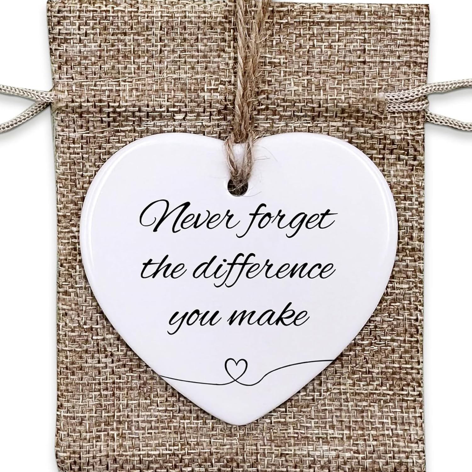 • 【Appreciation gifts for coworkers】This special ceramic ornament is a great keepsake gift with the words “Never forget the difference you make” to show your love and appreciation for any occasion.