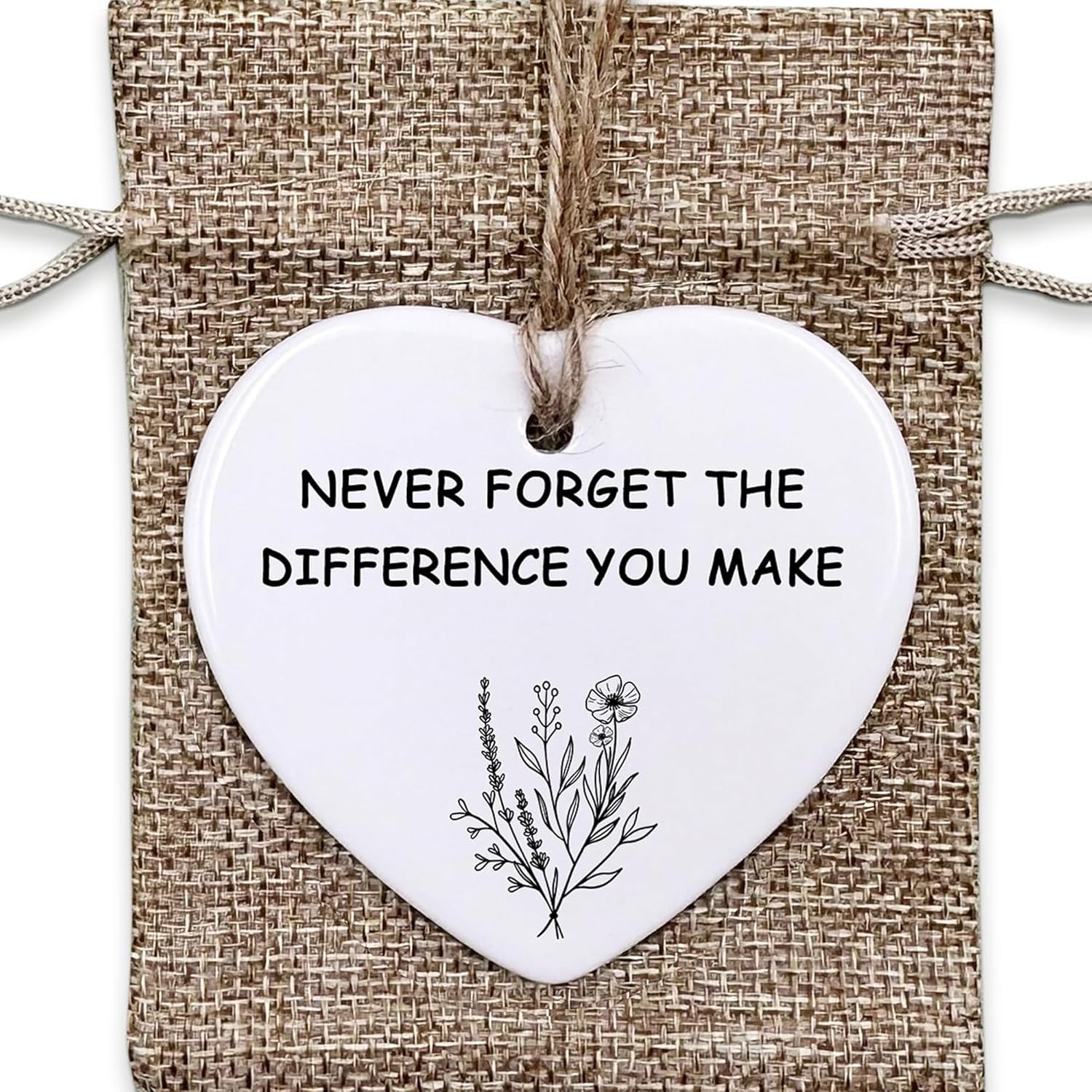 • 【Appreciation gifts for coworkers】This special ceramic ornament is a great keepsake gift with the words “Never forget the difference you make” to show your love and appreciation for any occasion.