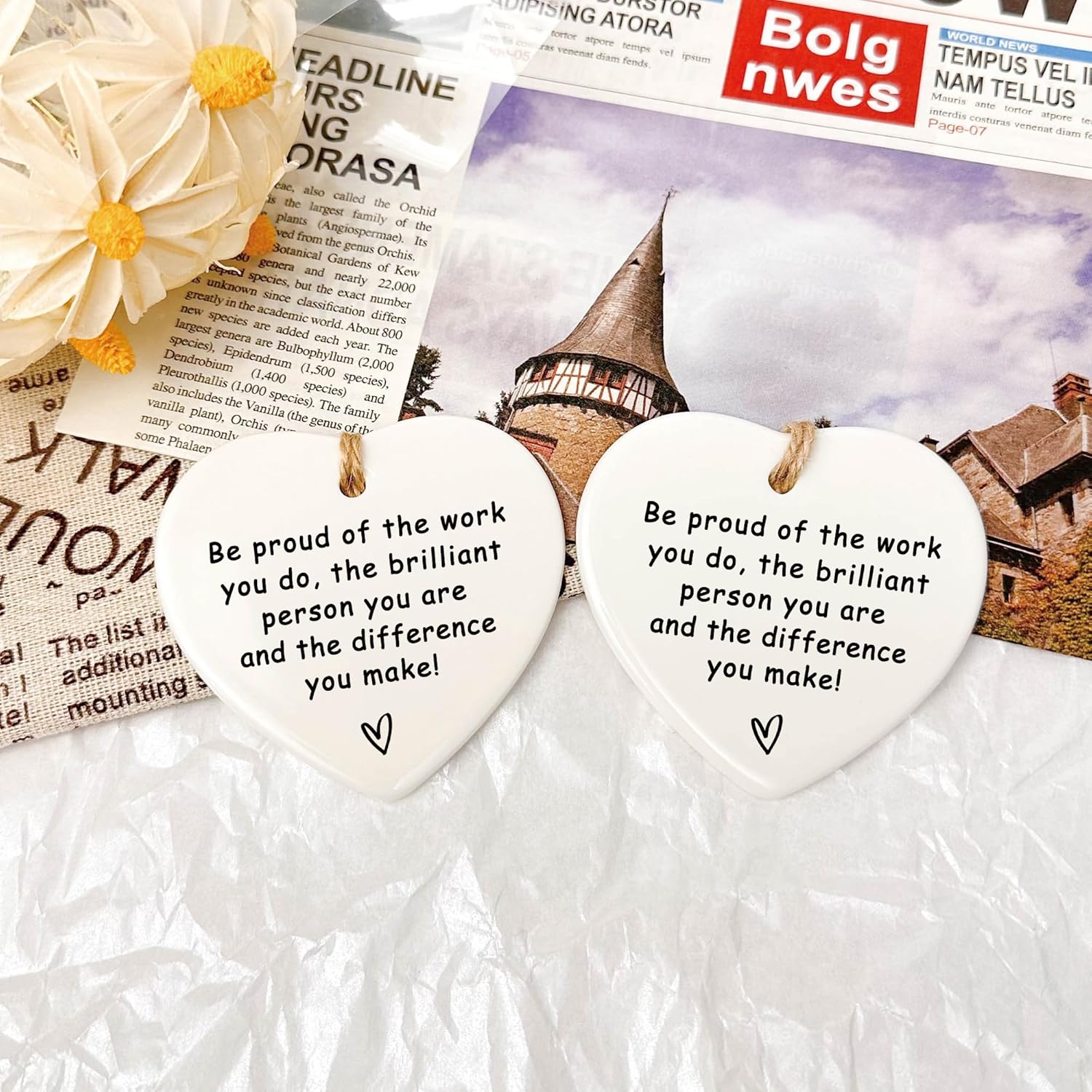 • 【Easy To Hang】This heart shaped ornament set comes with a free hanging string, delicate and compact, you can hang this ceramic keepsake gift on the Christmas tree, refrigerator, door, window, wall, bag or anywhere you want to hang it. This ornament is great home decorations, which can create a wonderful and cozy atmosphere for your home.