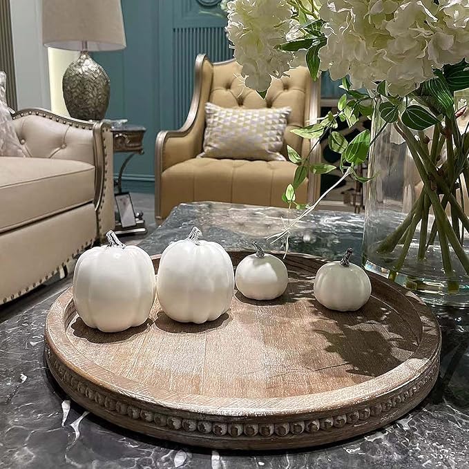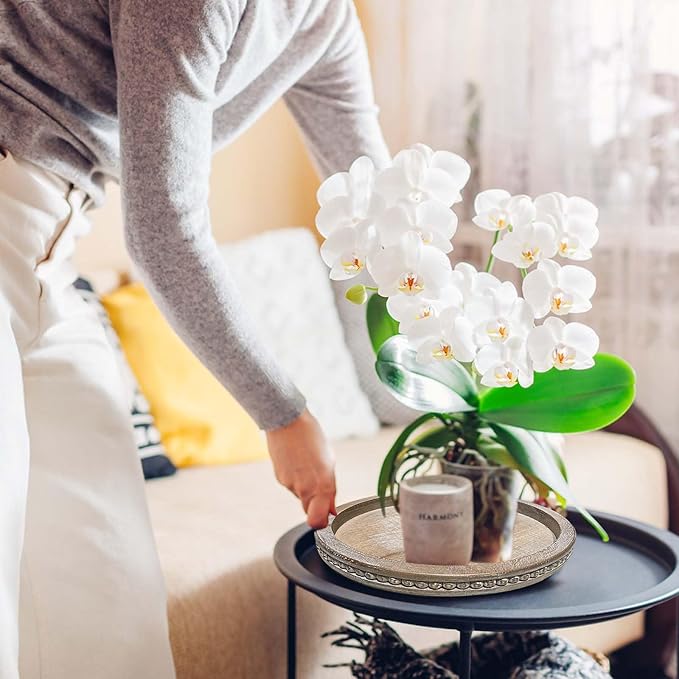 • [Unique Wood Grain]: Our round wood tray is made of premium natural pine wood,both durable sturdy and super lightweight,hard-wearing and serviceable for a long period to use. The wood trays home decor that come to you are unique.