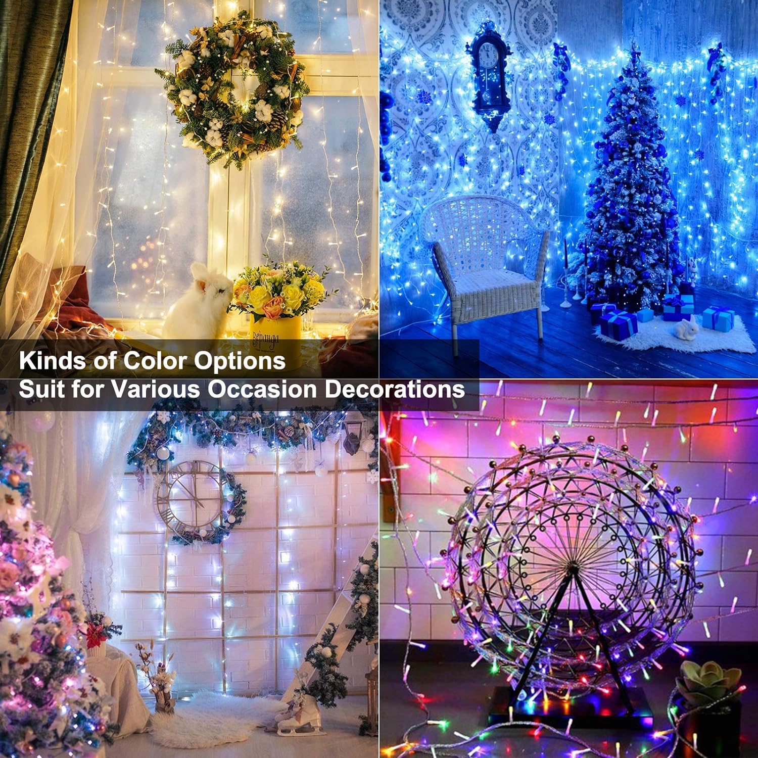• 16 Single Colors & Unique Festivals Colors: One color-changing sting light, enables you to switch 16 single colors. 7 mixed colors for various Festivals including multicolor for Christmas, purple& orange for Halloween, red& green for Christmas, red& white for Christmas, red, white& blue for July 4th, pastel for Easter, red& green, and light purple mixed colors. Each color has 3 modes and built-in 8 lighting modes: steady on & twinkle, meeting your year-round needs and creating a unique festive atmosphere.