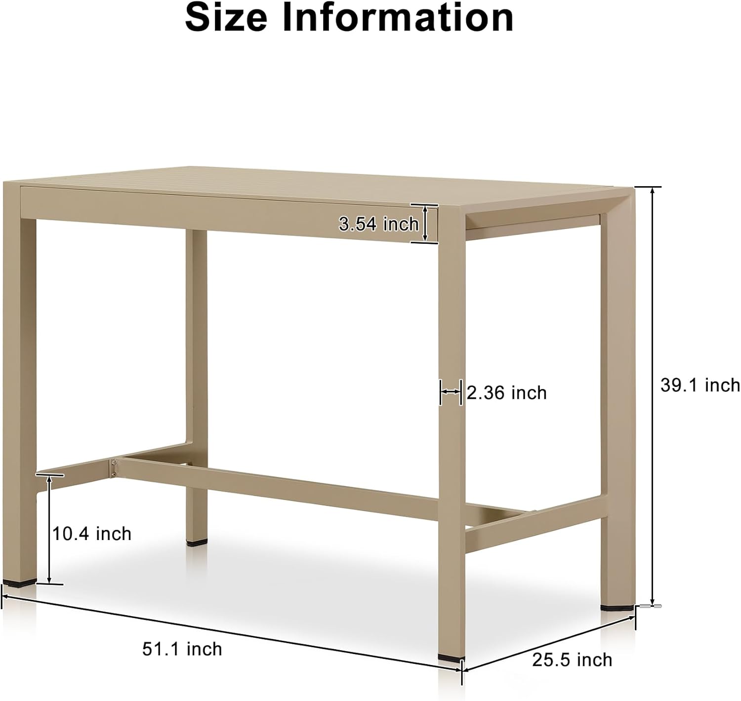 • Dimension: Include 1 tall bar table (51.1 "L x 25.50 "W x 39.1 "H). Available in 3 colors, including teak, grey, and champagne. which can be purchased together with PURPLE LEAF outdoor bar stools of the same color to make a complete set.