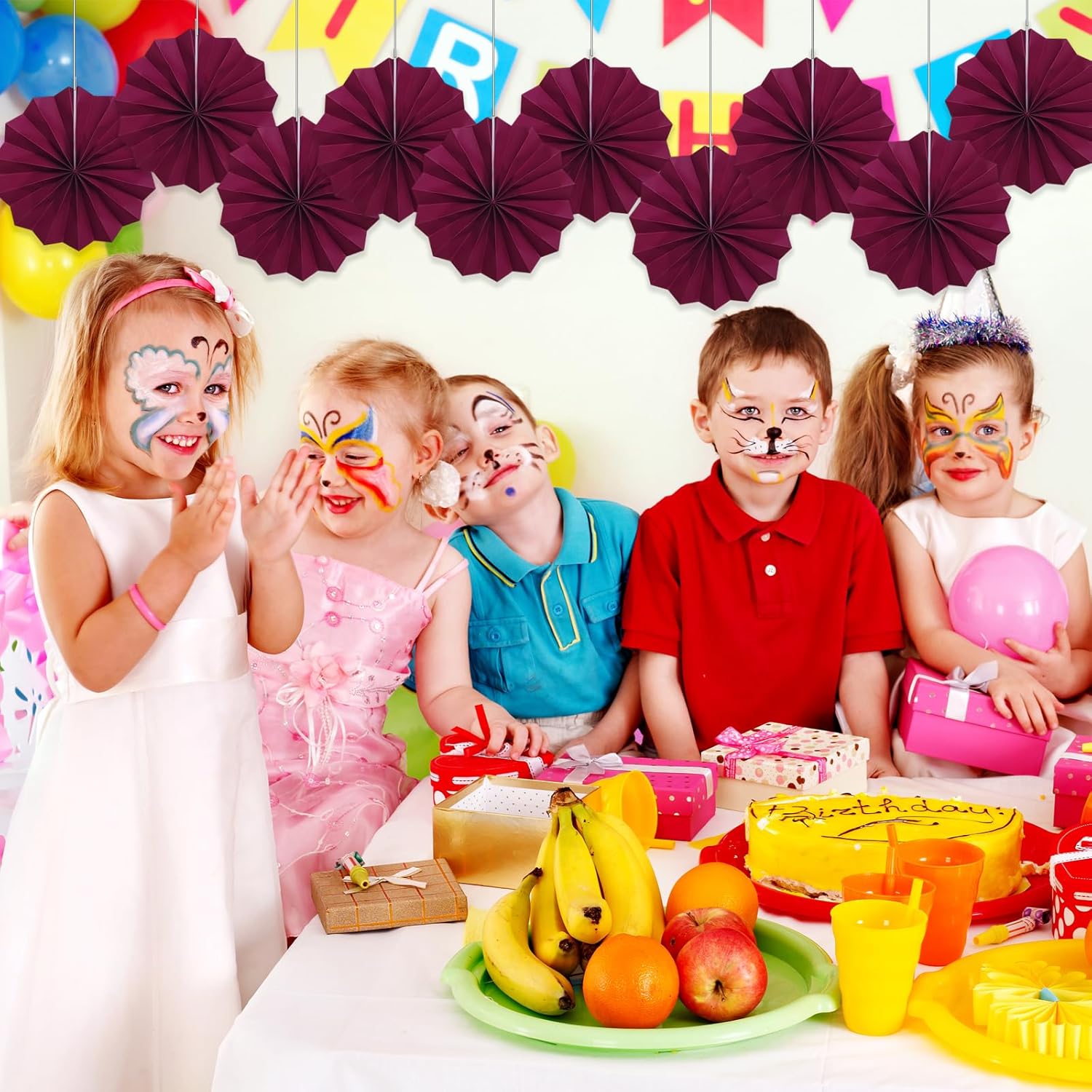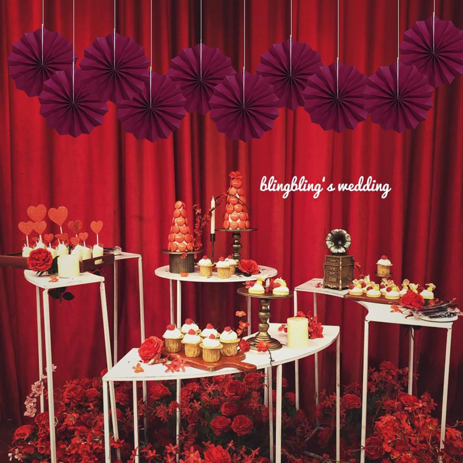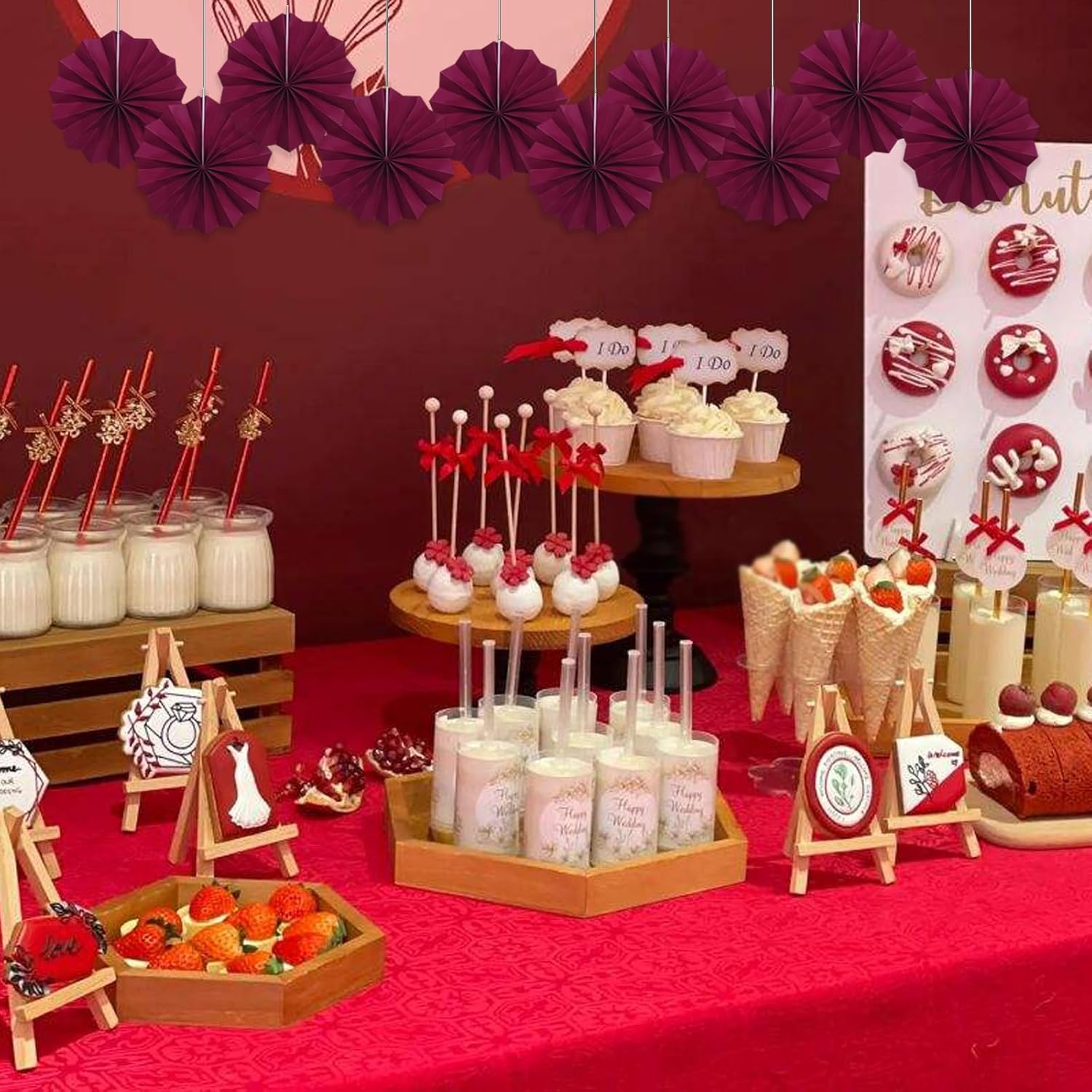 Red Party Decorations,Paper Decorations for Party,Girls Party Decorations Party Paper Fans Bulk 8in,Anniversary Decorations for Party 30 Color DIY Set (Wine Red)