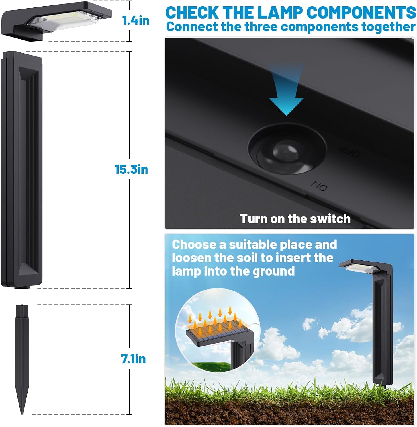 • ✅【Cordless Easy Installation & Warranty】Sunvivo outdoor solar pathway lights are so easy to install,just need to connect the three parts and insert to the ground.And the battery is easy to be replaced.It’s perfect guide light or decorative light for your various outdoor places such as lawn,garden,backyard,driveway,sideway,walkway or at outdoor event or party. 2-year warranty offered.