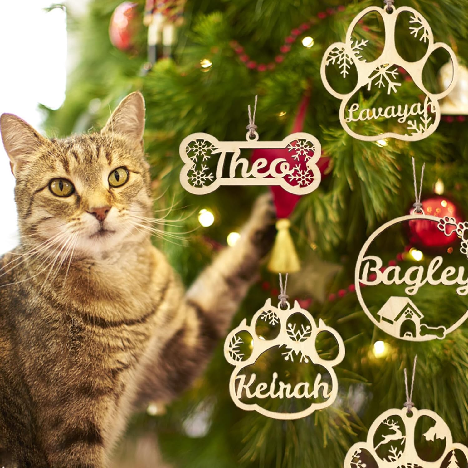 Personalized Christmas Ornaments 2025 with Names Custom Christmas Wooden Pet's Name Ornaments Personalized Dog Cat Paw Ornament