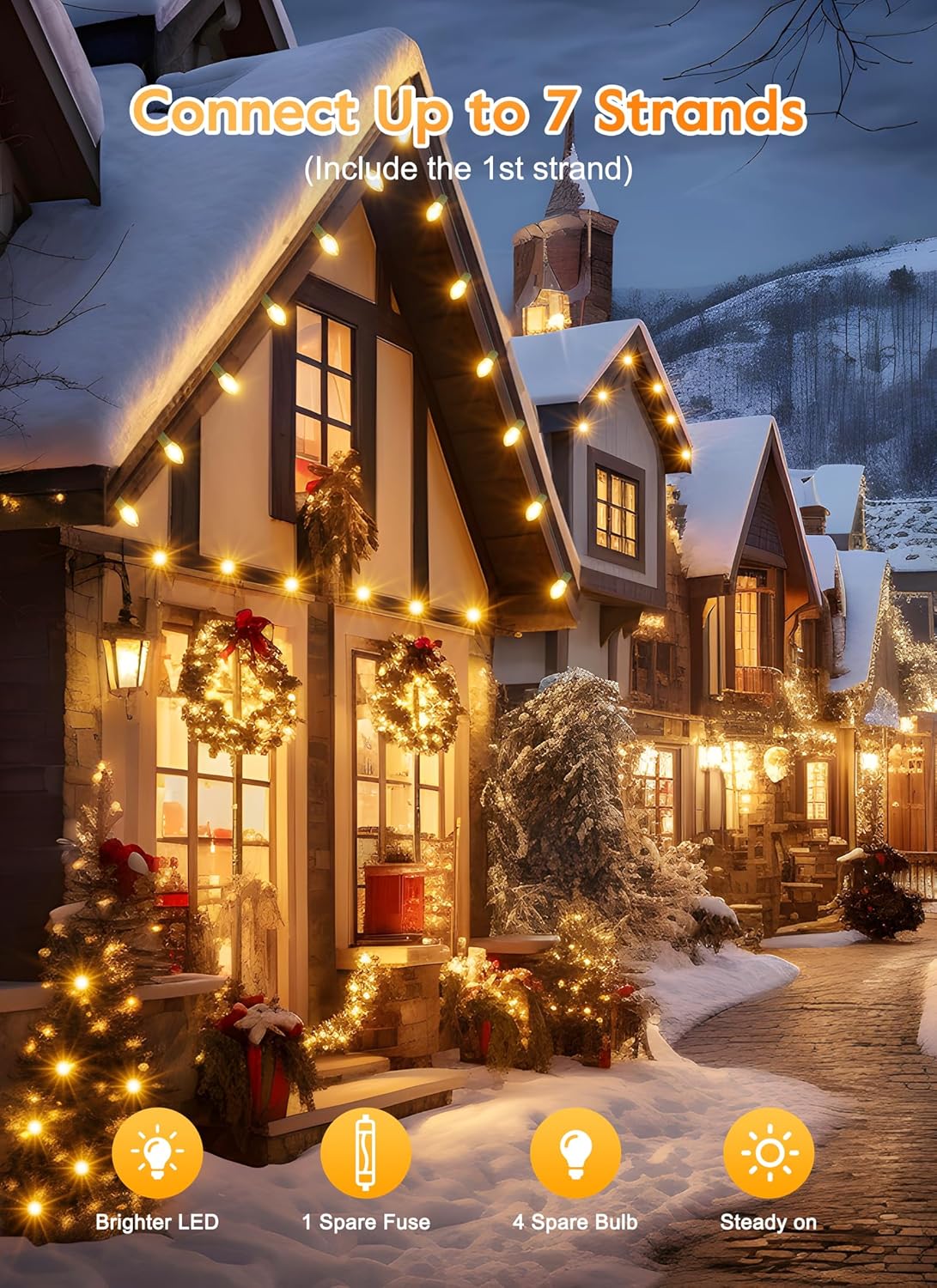 • Safety & Durable: UL certified C9 led christmas lights outdoor is built with weatherproof technology, which can withstand extreme temperatures, rain, wind, and damp climates. Safe and durable electric bistro lights either with a built-in spare fuse for easy replacement