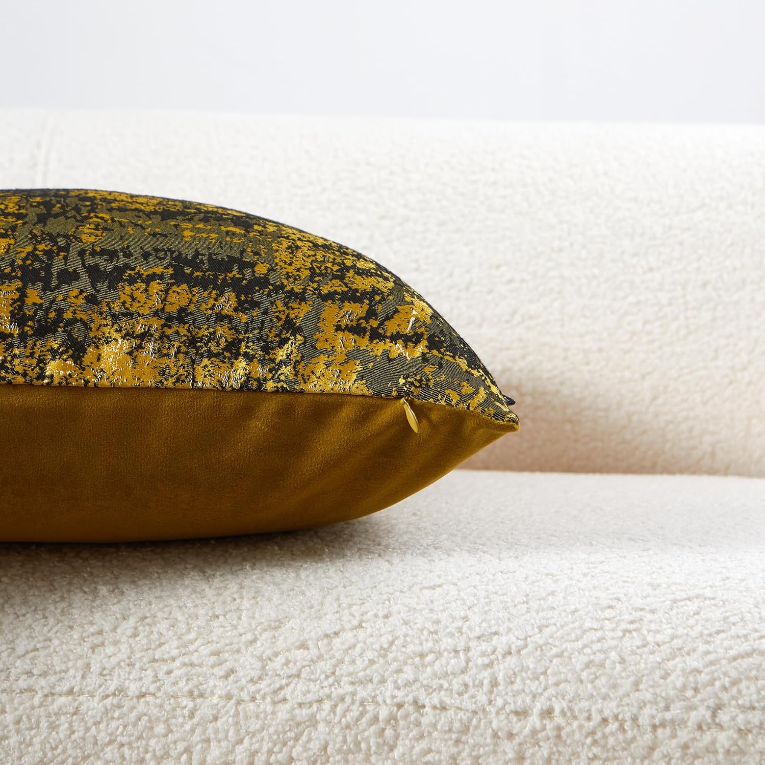 • Premium Jacquard & Velvet Pillow Cover : Crafted with luxe 70% polyester 30% viscose jacquard weave in Sun Gold & Black - a striking interplay of warm metallic gold and rich onyx threads that creates a contemporary luxe glow. The reverse features 100% polyester cream beige velvet in sumptuous cloud-soft texture. Two looks in one - Instantly elevates sofas, beds, or accent chairs—perfect for holiday glamour or everyday luxury.